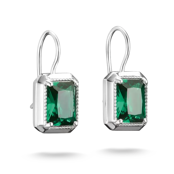- Ohrhänger aus recyceltem 925 Sterling Silber mit smaragdgrünem Stein im Oktagonbrilliantschliff