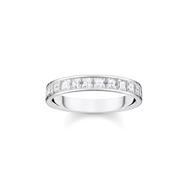 Zeitloser Must-have-Ring: elegantes Design aus recyceltem 925 Sterling Silber mit weißem Steinbesatz. Die 13 Zirkonia-Steine erstrahlen im edlen Prinzessschliff und sind von Hand in Kanalfassung gesetzt. Dadurch reihen sie sich nahtlos aneinander und entfachen bei Lichteinfall ein intensives Farbenspiel. Der Bandring lässt sich durch seinen sanft gerundeten Schaft angenehm tragen. Mit weiteren Ringen, Armbändern, Halsketten und Ohrringen im gleichen Design entstehen stillvolle Schmuckkombinationen, die zu jedem Look passen.