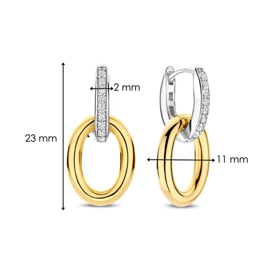 Diese Ohrringe aus hochwertigem 925er Sterlingsilber verfügen über einen schlanken, gelbvergoldeten ovalen Tropfen, der an einem Zirkonia-Creolen mit Pavé-Fassung aufgehängt ist und die perfekte Balance zwischen kühn und raffiniert darstellt.