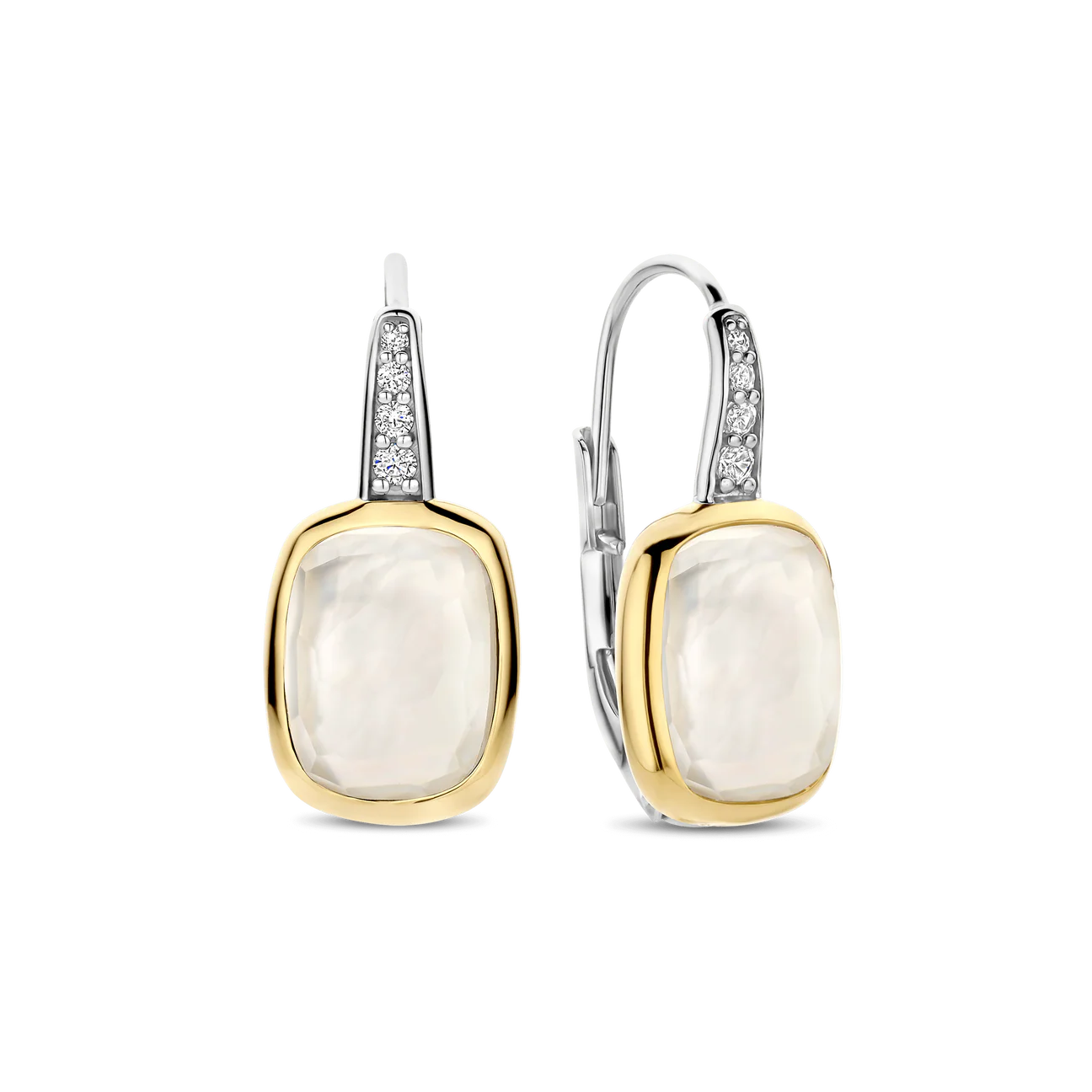 Strahlen Sie in zeitloser Eleganz in diesen vergoldeten Silberohrringen 78041MW von TI SENTO. Diese anmutigen Ohrringe aus 925er Sterlingsilber sind mit leuchtenden Perlmuttsteinen besetzt, die in einer weichen Kissenform geschliffen sind und von einer glatten Lünette aus Gelbgold eingerahmt werden. Die platinierten Haken sind mit weißem Zirkonia im Brillantschliff besetzt, der dem perlmuttartigen Schimmer der Steine einen Hauch von Glanz verleiht. Mit ihrer zarten Bewegung und dem lichtreflektierenden Finish eignen sie sich perfekt, um einen Tageslook aufzupeppen oder der Abendgarderobe Raffinesse zu verleihen. Diese nickelfreien und hypoallergenen Ohrringe sind für empfindliche Haut und dauerhafte Eleganz gemacht.