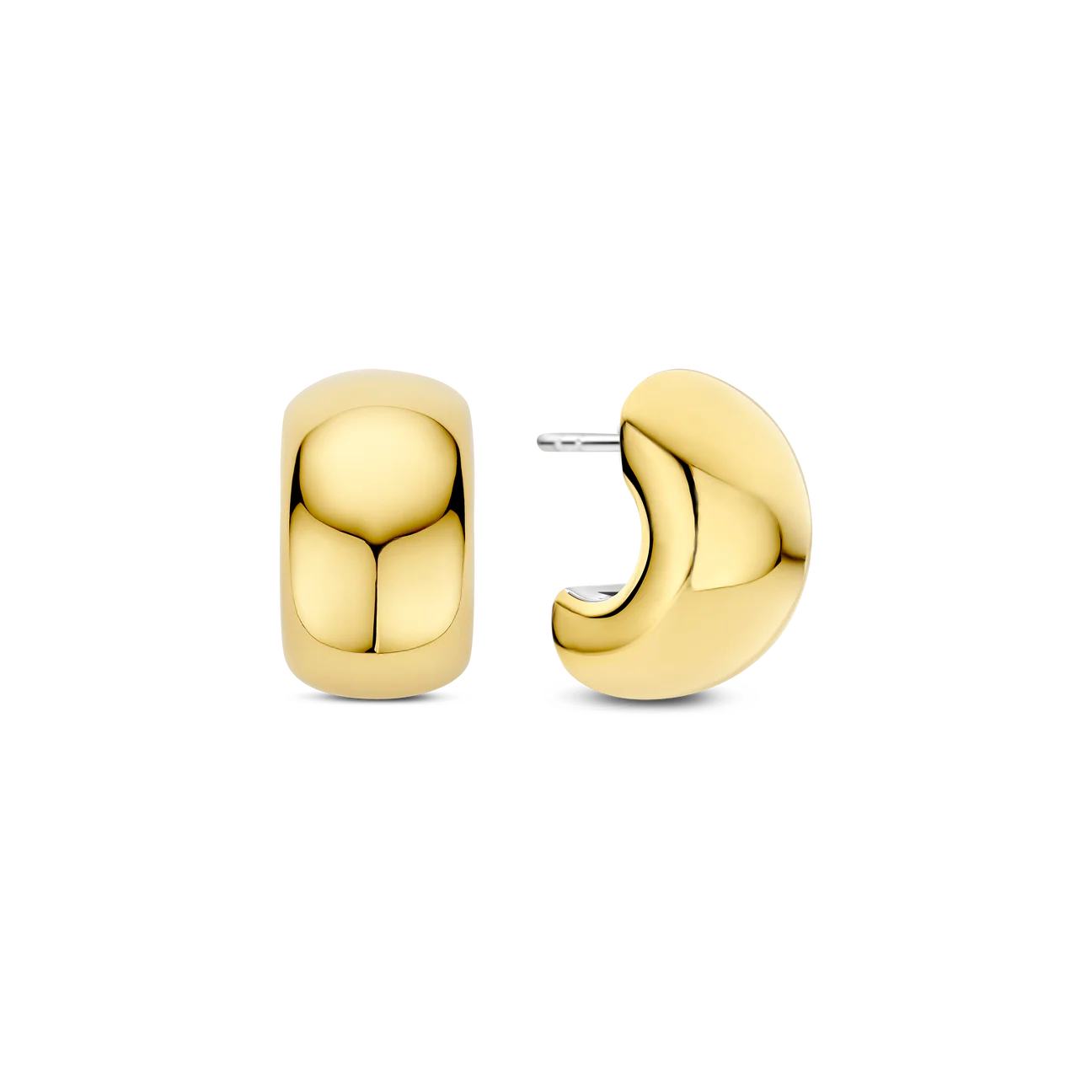 Mit ihrem etwas breiteren Profil haben diese 18-karat-goldenen Vermeil-Statement-Ohrringe eine deutliche Präsenz, doch ihre raffinierte Form macht sie ideal für den Alltag. Sie passen mühelos zu minimalistischem und ausdrucksstärkeren Schmuck und funktionieren sowohl als mutiges Statement als auch als anspruchsvolles Element in einer modernen, zeitlosen Kollektion. 78048SY Circles & Cross-over Ohrringe