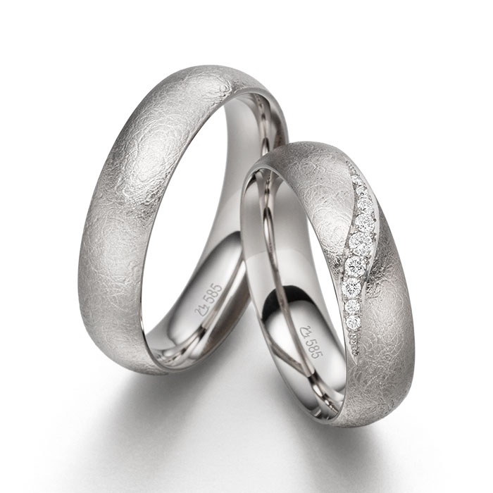 Zudem kann jeder Ring individuell angepasst werden – in der Breite, Stärke ebenso wie beim Steinbesatz, bei der Goldfarbe oder der Oberfläche.